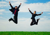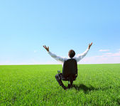 Cieszę się, że biznesmen stojący na zielonej trawie
