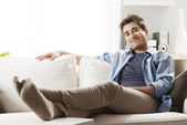 Zdjęcie "młody człowiek na kanapie" może być wykorzystywane do celów osobistych i komercyjnych zgodnie z warunkami zakupionej licencji Royalty-free. Obraz jest dostępny do pobrania w jakości wysokiej rozdzielczości do 5760x3840.