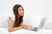 Zdjęcie "kobieta siedzi na łóżku z laptopa" może być wykorzystywane do celów osobistych i komercyjnych zgodnie z warunkami zakupionej licencji Royalty-free. Obraz jest dostępny do pobrania w jakości wysokiej rozdzielczości do 5760x3840.