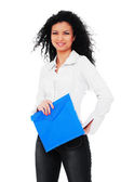 Zdjęcie "Szczęśliwa kobieta z folderu" może być wykorzystywane do celów osobistych i komercyjnych zgodnie z warunkami zakupionej licencji Royalty-free. Obraz jest dostępny do pobrania w jakości wysokiej rozdzielczości do 5760x3840.