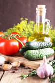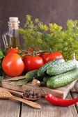 świeże warzywa, zioła i przyprawy na stole, szczelnie-do góry