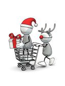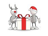 mały człowiek szkicowy z santa hat obecny renifer z pudełko