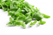 Kępka świeżego szczawiu biały na białym tle na zbliżenie