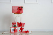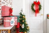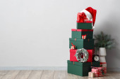 Zdjęcie "Piękne prezenty świąteczne w pobliżu ściany kolor" może być wykorzystywane do celów osobistych i komercyjnych zgodnie z warunkami zakupionej licencji Royalty-free. Obraz jest dostępny do pobrania w jakości wysokiej rozdzielczości do 5760x3840.