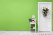 Piękne prezenty świąteczne w pobliżu ściany kolor