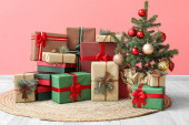 Zdjęcie "Piękne prezenty świąteczne w pobliżu ściany światła" może być wykorzystywane do celów osobistych i komercyjnych zgodnie z warunkami zakupionej licencji Royalty-free. Obraz jest dostępny do pobrania w jakości wysokiej rozdzielczości do 5760x3840.