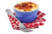 Drewniana deska ze smacznym warzywnym plackiem na białym tle