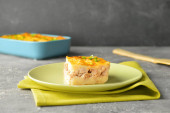 Drewniana deska smaczne warzywa pot pie na białym tle