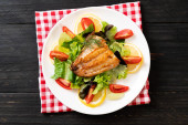 Płyta smacznych ryb okonia morskiego z warzywami na stole