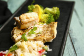 Zdjęcie "Drewniana deska smacznych ryb okonia morskiego z warzywami na stole" może być wykorzystywane do celów osobistych i komercyjnych zgodnie z warunkami zakupionej licencji Royalty-free. Obraz jest dostępny do pobrania w jakości wysokiej rozdzielczości do 5760x3840.
