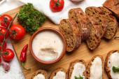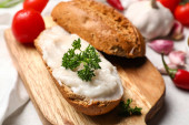 Zdjęcie "Chleb ze smalcem rozłożonym na desce drewnianej" może być wykorzystywane do celów osobistych i komercyjnych zgodnie z warunkami zakupionej licencji Royalty-free. Obraz jest dostępny do pobrania w jakości wysokiej rozdzielczości do 5760x3840.
