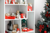 Zdjęcie "Klatka piersiowa szuflady z pudełkami na prezenty świąteczne w pobliżu ściany światła" może być wykorzystywane do celów osobistych i komercyjnych zgodnie z warunkami zakupionej licencji Royalty-free. Obraz jest dostępny do pobrania w jakości wysokiej rozdzielczości do 5760x3840.