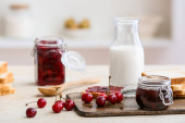 Słoik smacznego dżemu lingonowego i tosty na białym tle