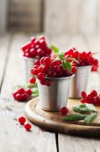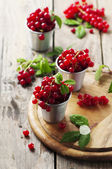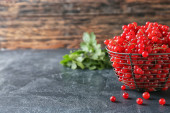 Miska smacznego dżemu lingonowego i świeżych jagód na drewnianym tle