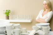 nowoczesna kuchnia - szczęśliwa kobieta zmywanie naczyń