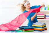 Zdjęcie "pralnia - kobieta składanie ubrania" może być wykorzystywane do celów osobistych i komercyjnych zgodnie z warunkami zakupionej licencji Royalty-free. Obraz jest dostępny do pobrania w jakości wysokiej rozdzielczości do 5760x3840.