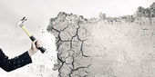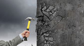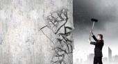 femme d'affaires avec marteau dans les mains
