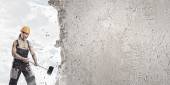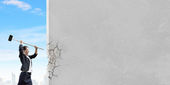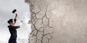 femme d'affaires avec marteau dans les mains