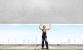 femme d'affaires avec marteau dans les mains