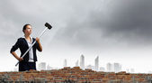 femme d'affaires avec marteau dans les mains