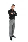 Zdjęcie "młody człowiek w niebieska koszula i jeansy" może być wykorzystywane do celów osobistych i komercyjnych zgodnie z warunkami zakupionej licencji Royalty-free. Obraz jest dostępny do pobrania w jakości wysokiej rozdzielczości do 5760x3840.