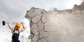 femme d'affaires avec marteau dans les mains