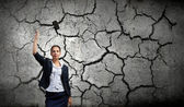 femme d'affaires avec marteau dans les mains