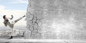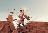 femme d'affaires avec marteau dans les mains