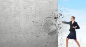 femme d'affaires avec marteau dans les mains
