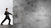 femme d'affaires avec marteau dans les mains