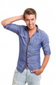 Zdjęcie "młody człowiek wesoły w niebieska koszula" może być wykorzystywane do celów osobistych i komercyjnych zgodnie z warunkami zakupionej licencji Royalty-free. Obraz jest dostępny do pobrania w jakości wysokiej rozdzielczości do 5760x3840.