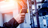 Młody browar w skórzanym fartuchu nadzorujący proces fermentacji piwa w nowoczesnej fabryce browarów