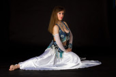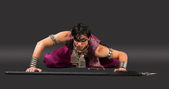 piękna kobieta w arabskich strojach siedzieć z szablą