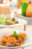 Zamknij się mieszać smażone grzyby z sosem ostrygowym na danie, kuchni azjatyckiej stylu