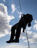 Obwód Kałuski, Rosja - 13.09.2019: Na lotnisku wojskowym z oficerami SOBR (jednostki antyterrorystycznej) Centralnego Okręgu Gwardii Rosyjskiej przeprowadzono lądowanie bez spadochronów ze śmigłowców Mi-8