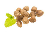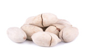 Kupa białych kardamonowych kapsuł odizolowanych na białym tle. Kapulaga Jawa lub jawajski kardamon. Amomum kepulaga. Ścieżka wycinania.