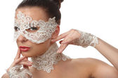 piękna kobieta z przetargu twarz w koronki maska na oczy