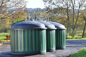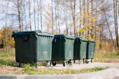 Plastikowe pojemniki na śmieci na świeżym powietrzu w letni słoneczny dzień