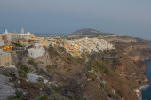 Panoramiczny widok na Firę, miasto na wyspie Santorini, Grecja
