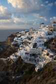 Panoramiczny widok na Oia, miasto turystyczne na wyspie Santorini, Grecja