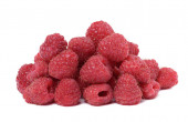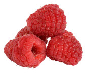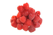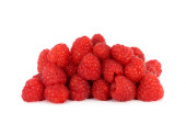 całe dojrzałe czerwone maliny na białym tle, jagoda letnia