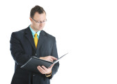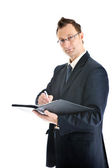 jeden biznesmen młody na białym tle