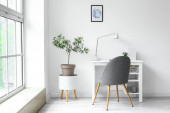 Nowoczesne wnętrze salonu ze stylowym lustrem i fotelem