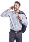 Zdjęcie "Young business man on mobile phone" może być wykorzystywane do celów osobistych i komercyjnych zgodnie z warunkami zakupionej licencji Royalty-free. Obraz jest dostępny do pobrania w jakości wysokiej rozdzielczości do 5760x3840.