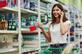 Zdjęcie "Używając smartfona. Kobieta kupująca w odzieży casual na rynku szuka produktów." może być wykorzystywane do celów osobistych i komercyjnych zgodnie z warunkami zakupionej licencji Royalty-free. Obraz jest dostępny do pobrania w jakości wysokiej rozdzielczości do 5760x3840.