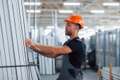 Zdjęcie "W magazynie z wieloma przedmiotami. Pracownik przemysłowy w fabryce. Młody technik w pomarańczowym twardym kapeluszu." może być wykorzystywane do celów osobistych i komercyjnych zgodnie z warunkami zakupionej licencji Royalty-free. Obraz jest dostępny do pobrania w jakości wysokiej rozdzielczości do 5760x3840.
