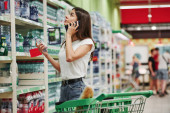 Zdjęcie "Rozmowa przez telefon. Kobieta kupująca w odzieży casual na rynku szuka produktów." może być wykorzystywane do celów osobistych i komercyjnych zgodnie z warunkami zakupionej licencji Royalty-free. Obraz jest dostępny do pobrania w jakości wysokiej rozdzielczości do 5760x3840.