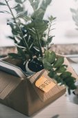Widok sprzedawcy trzymającego metkę z ceną sprzedaży w pobliżu kaktusów w kwiaciarni