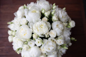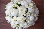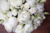 Kompozycja jest wykonana przez kwiaciarnie ze świeżych kwiatów na przyjęciu, weselu lub uroczystości.