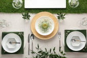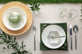 Elegancka oprawa świąteczna z kwiatowym wystrojem na stole, płaska leżanka